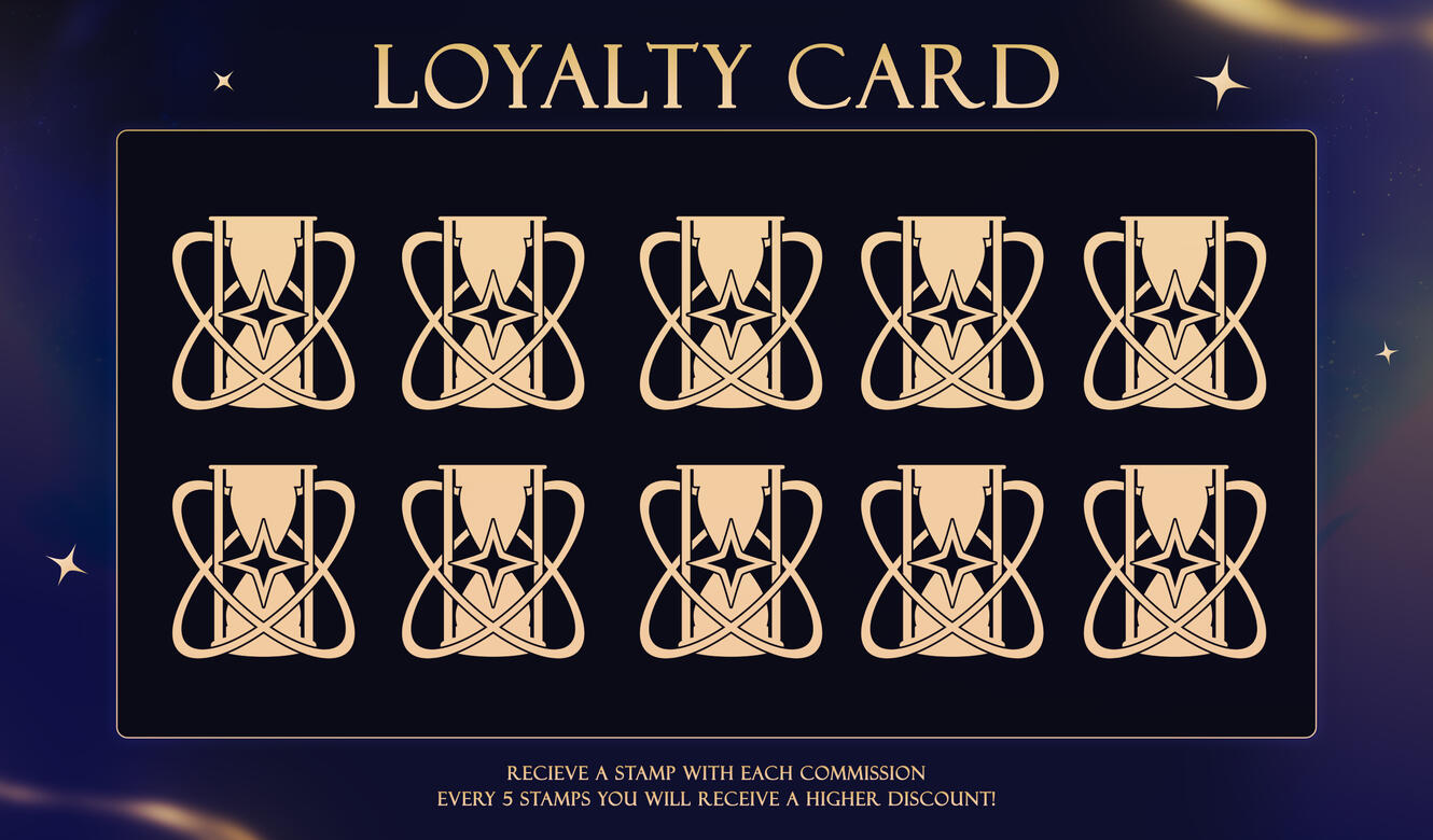 Clients who commissions any of the packages or if you requested a custom package that included 3 or more assets will receive 2 stamps