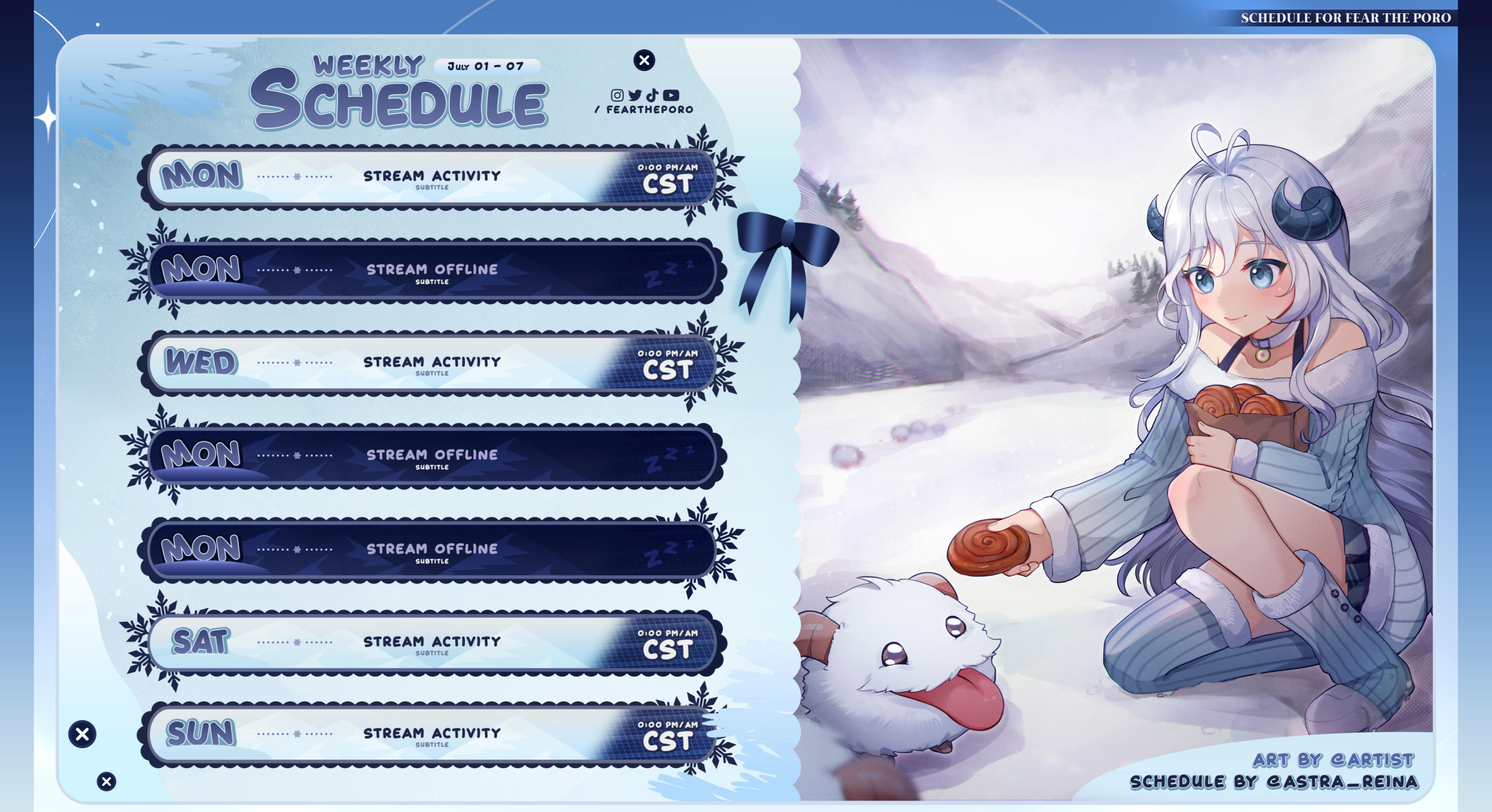A majority of my stream assets were created by me! But I have worked with a lot of amazing artists who helped me during this journey across the stars.Here's a list of talented artists I've worked with. Also I created a list on VGen if you want to commission them!